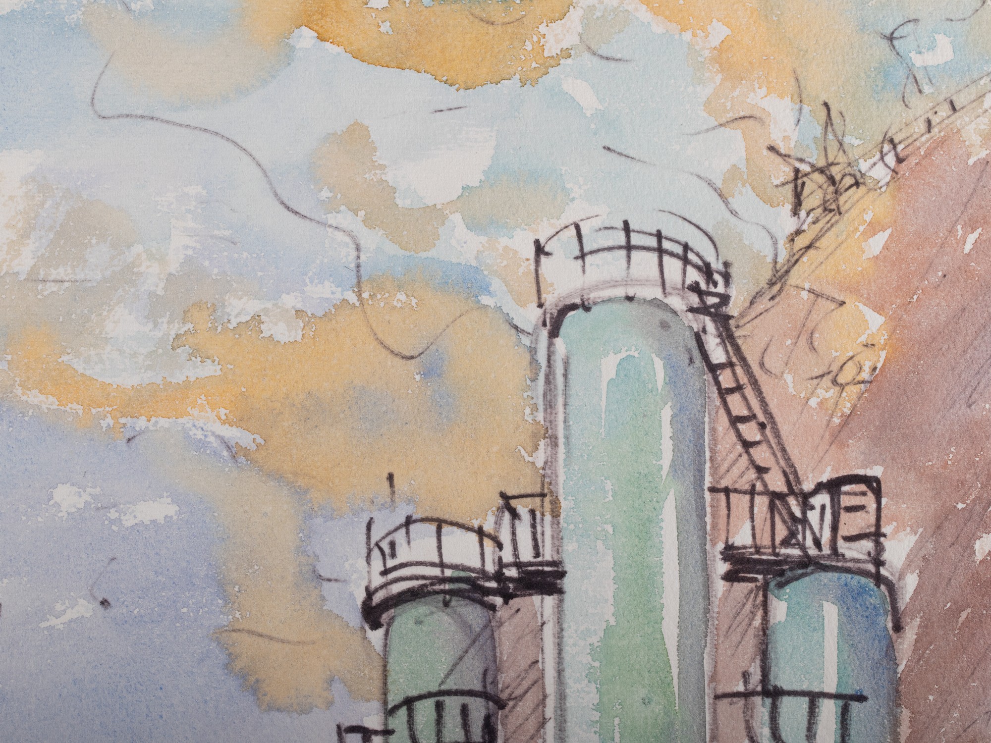 Drawing, felt tip pen, watercolor. 45.0×60.0 cm