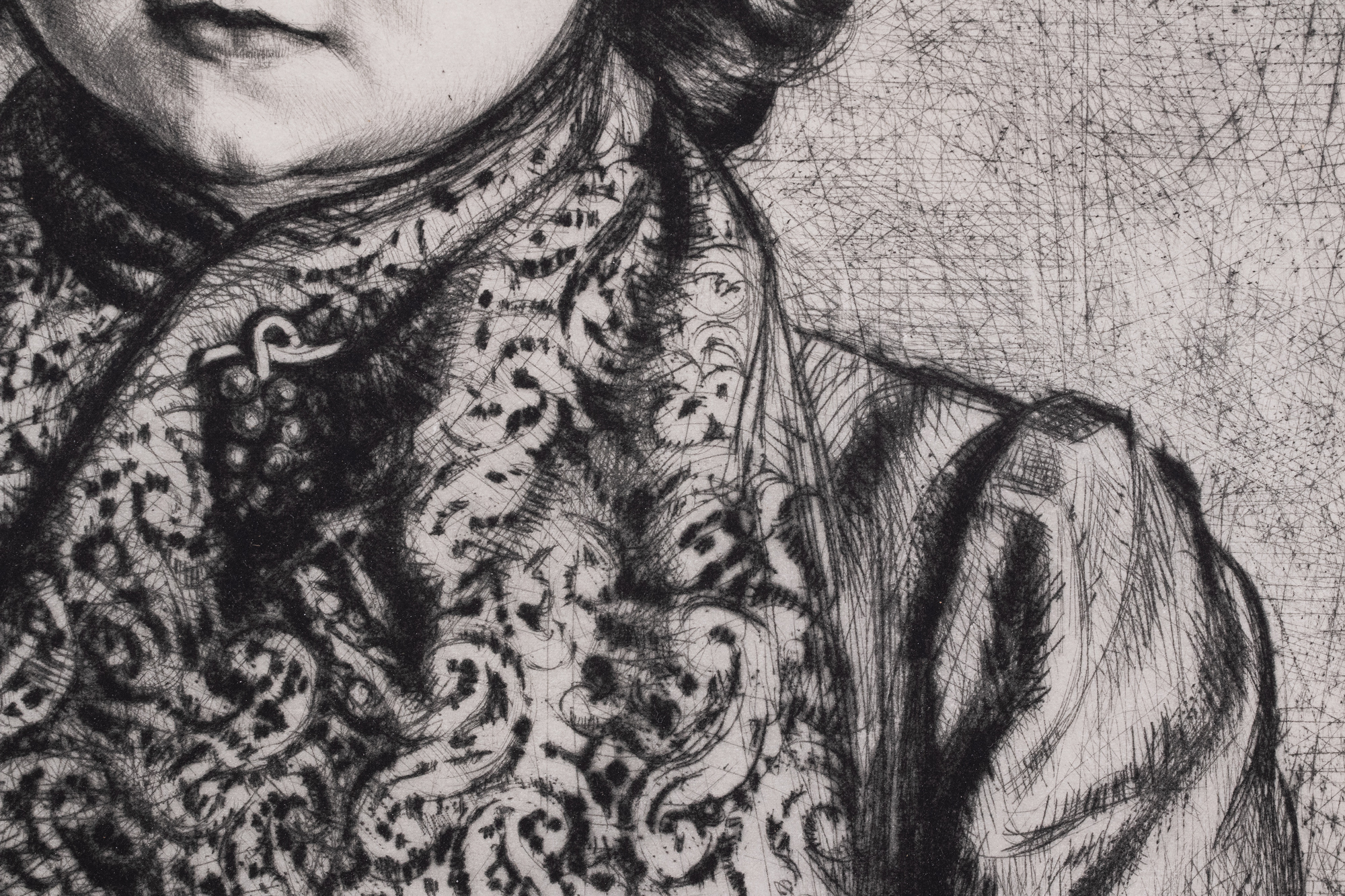 Vernis mou, drypoint. 32.3×24.9 cm