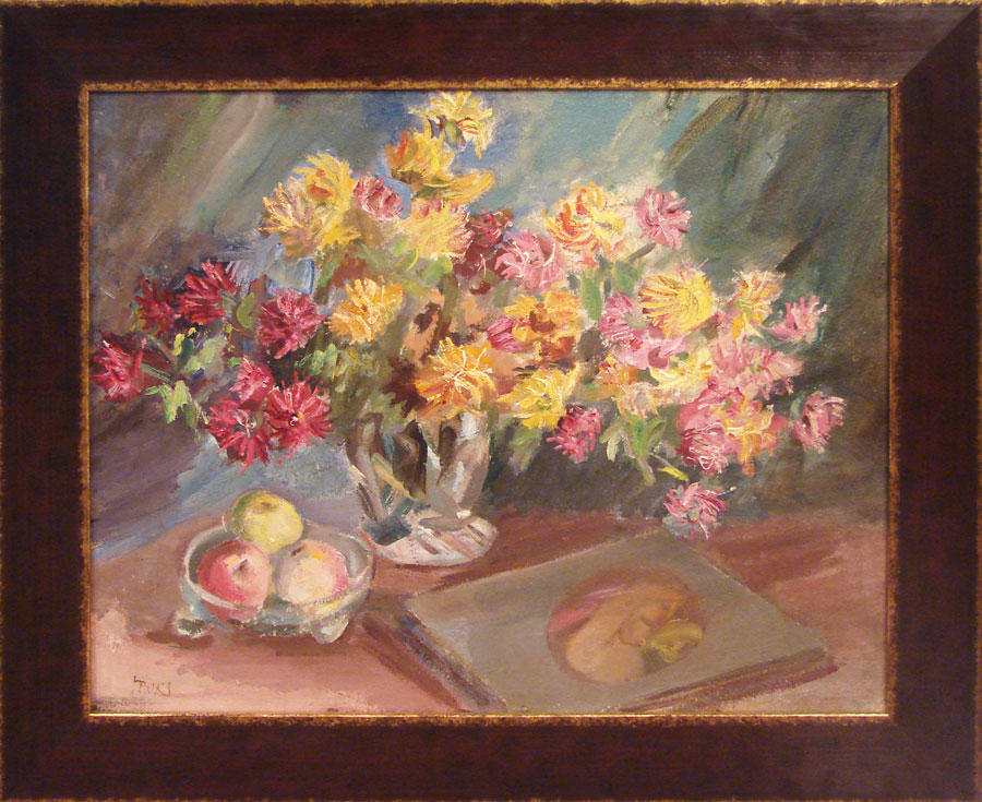 Juhan Muks 1899–1983 Krüsanteemid ja õunad laual. 1950 - 1960