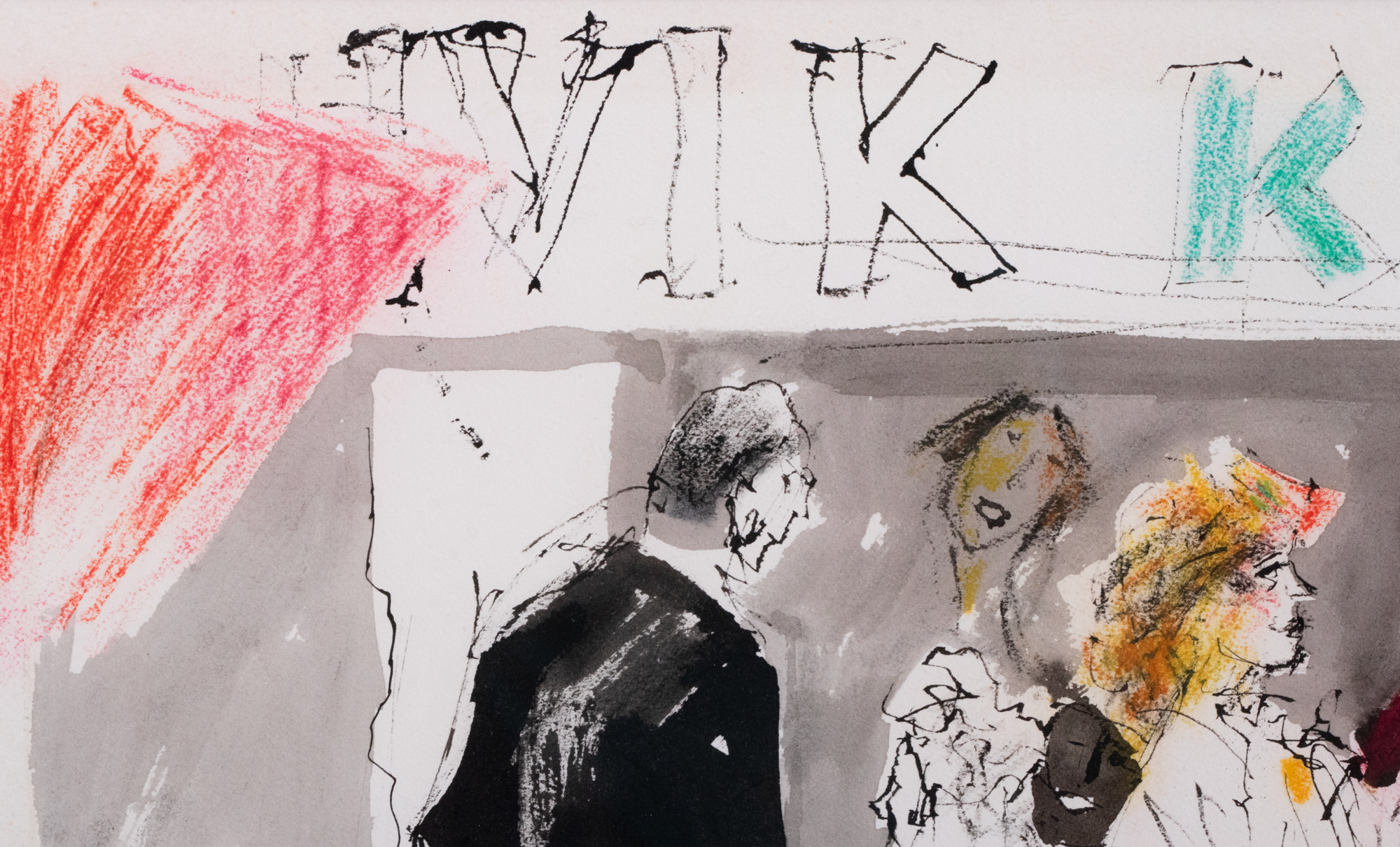 süsi, värviline kriit. 31.5×42.5 cm