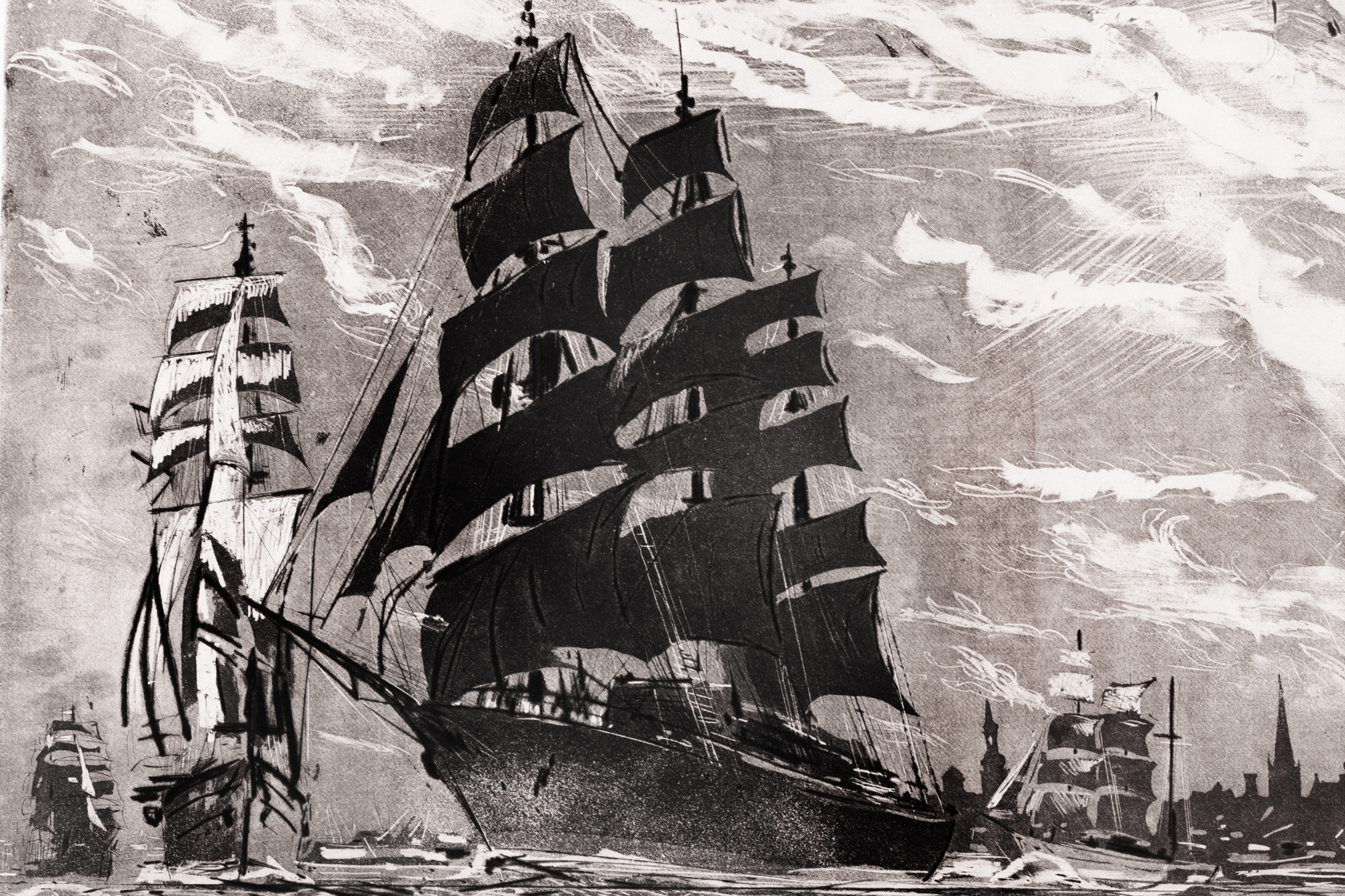 Laevad Tallinna silueti taustal. 1985