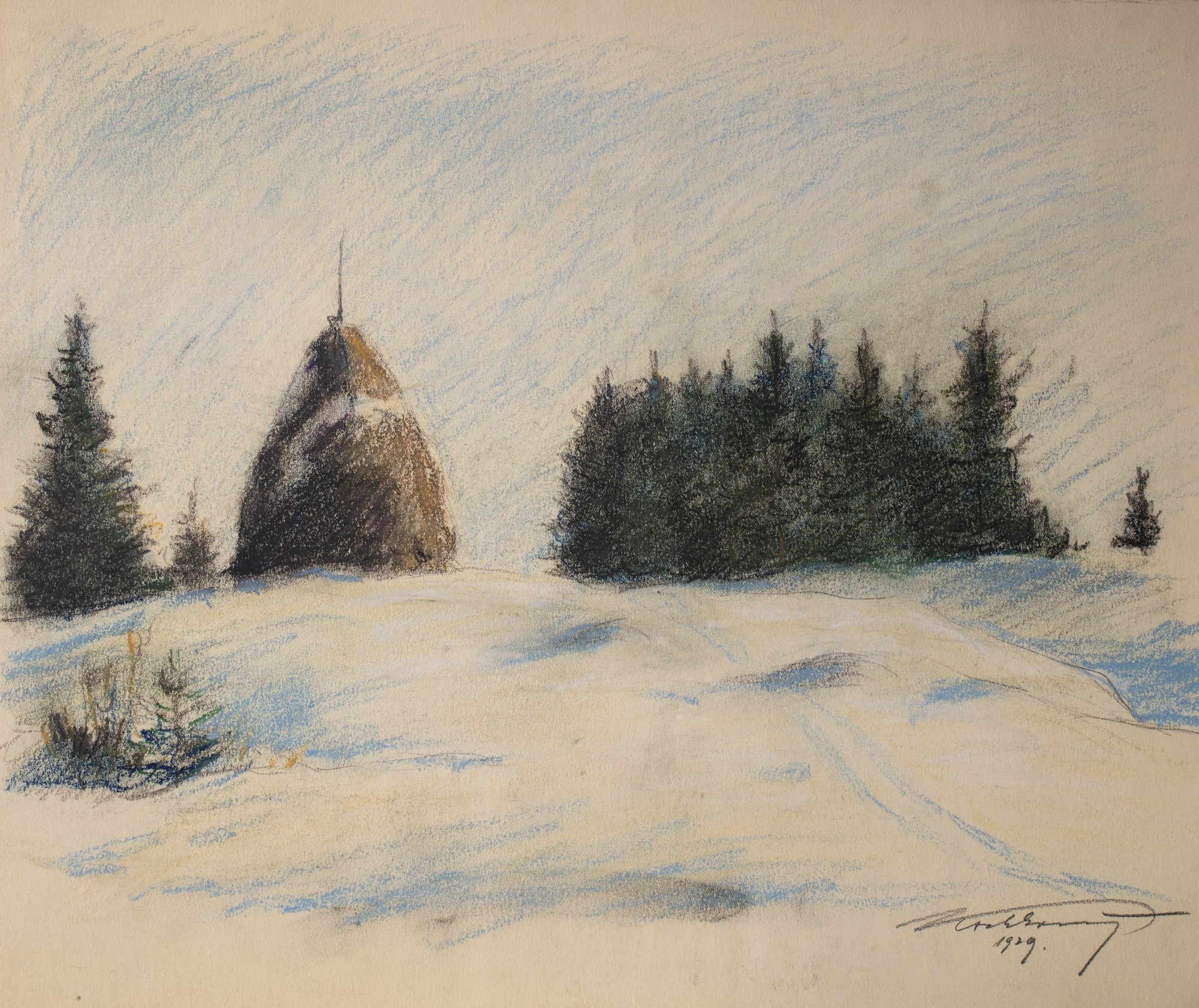 Pastell, värviline pliiats. vm 37.0×26.2 cm