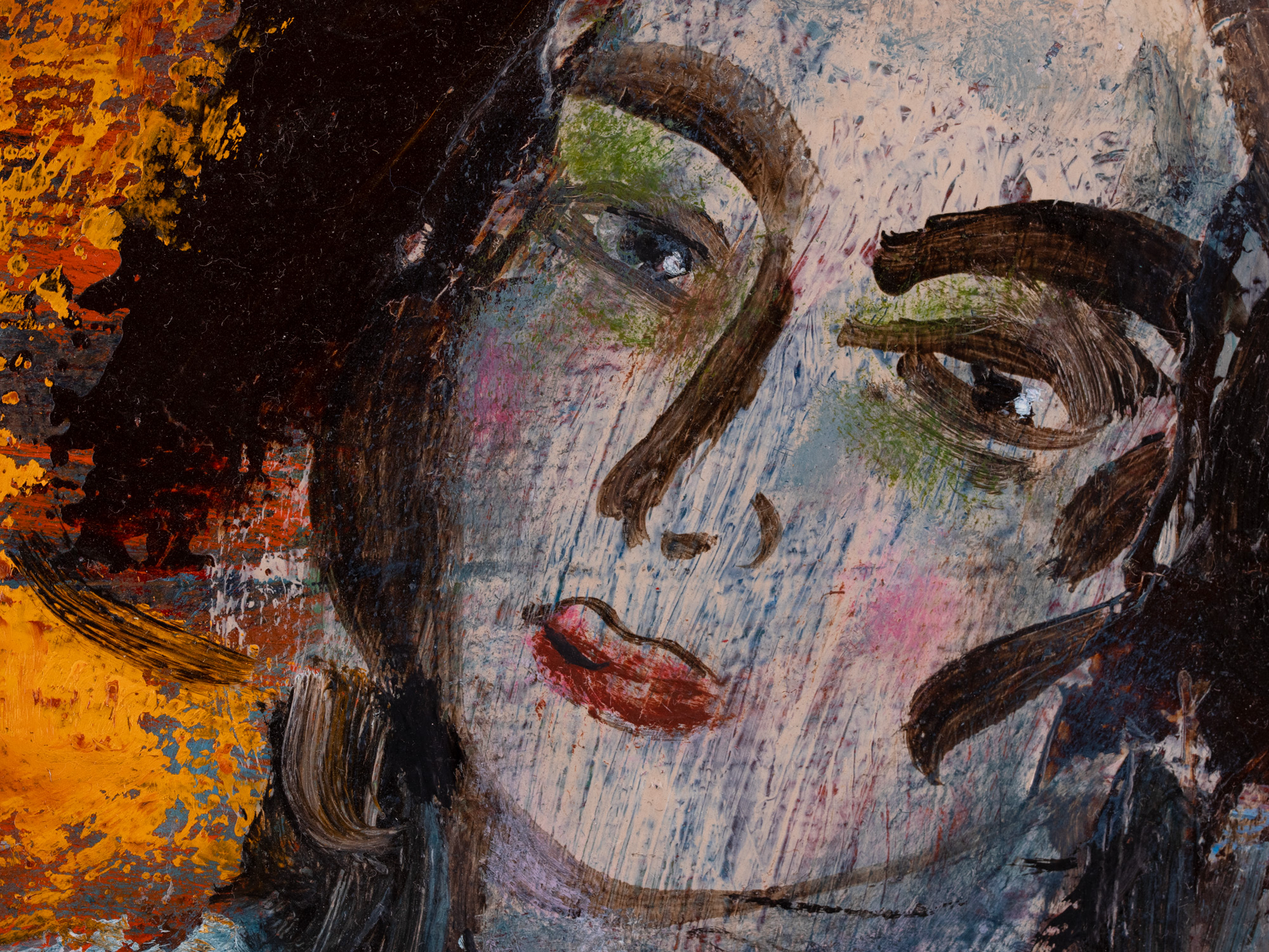 Õli, kollaaž, papp. 59.5×83.5 cm