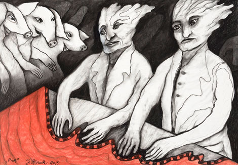 Tušš, värvipliiats, paber. 47.0×60.0 cm