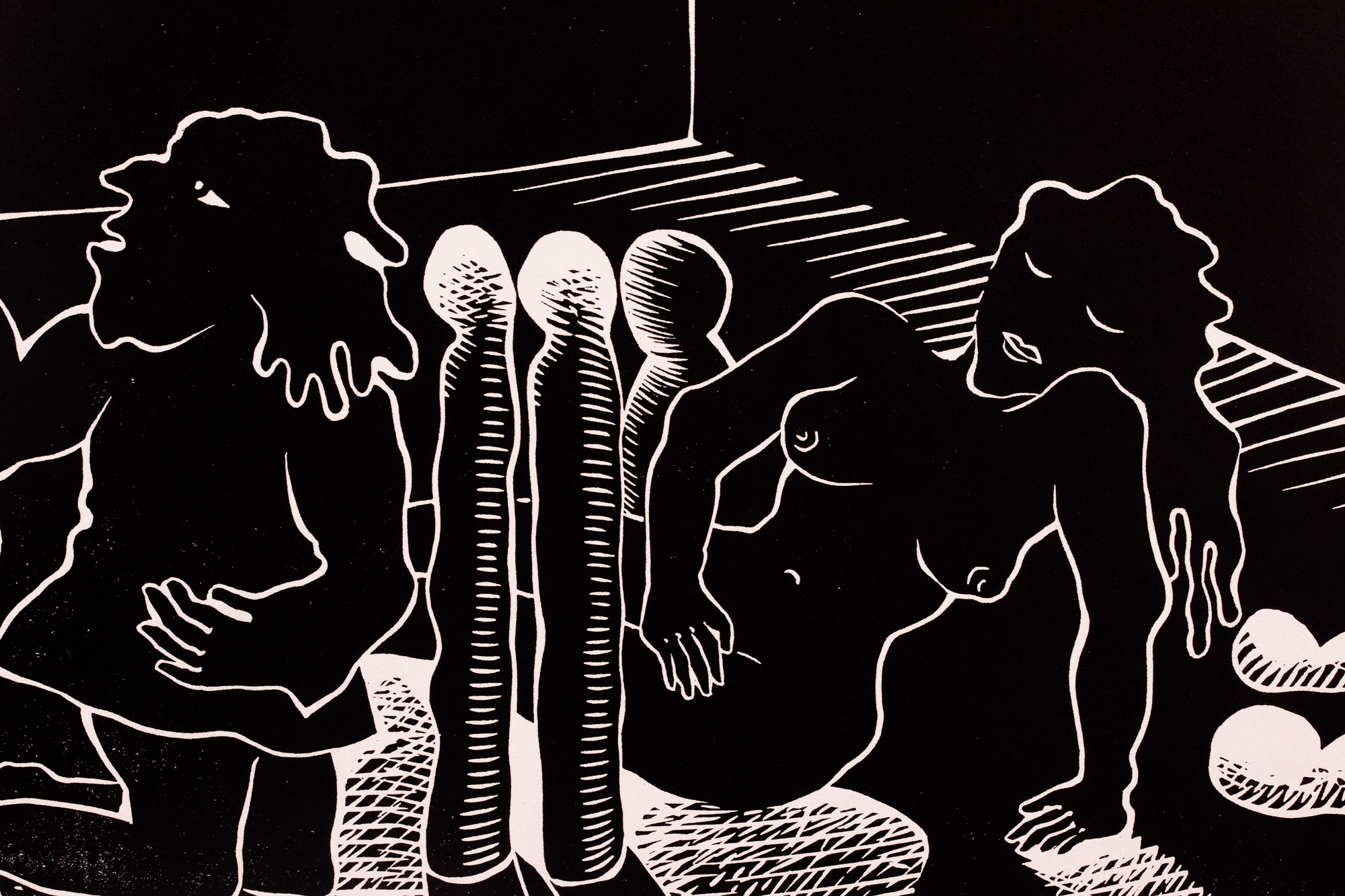 Eeltöö linoollõikele "Kolm inimest". 1964