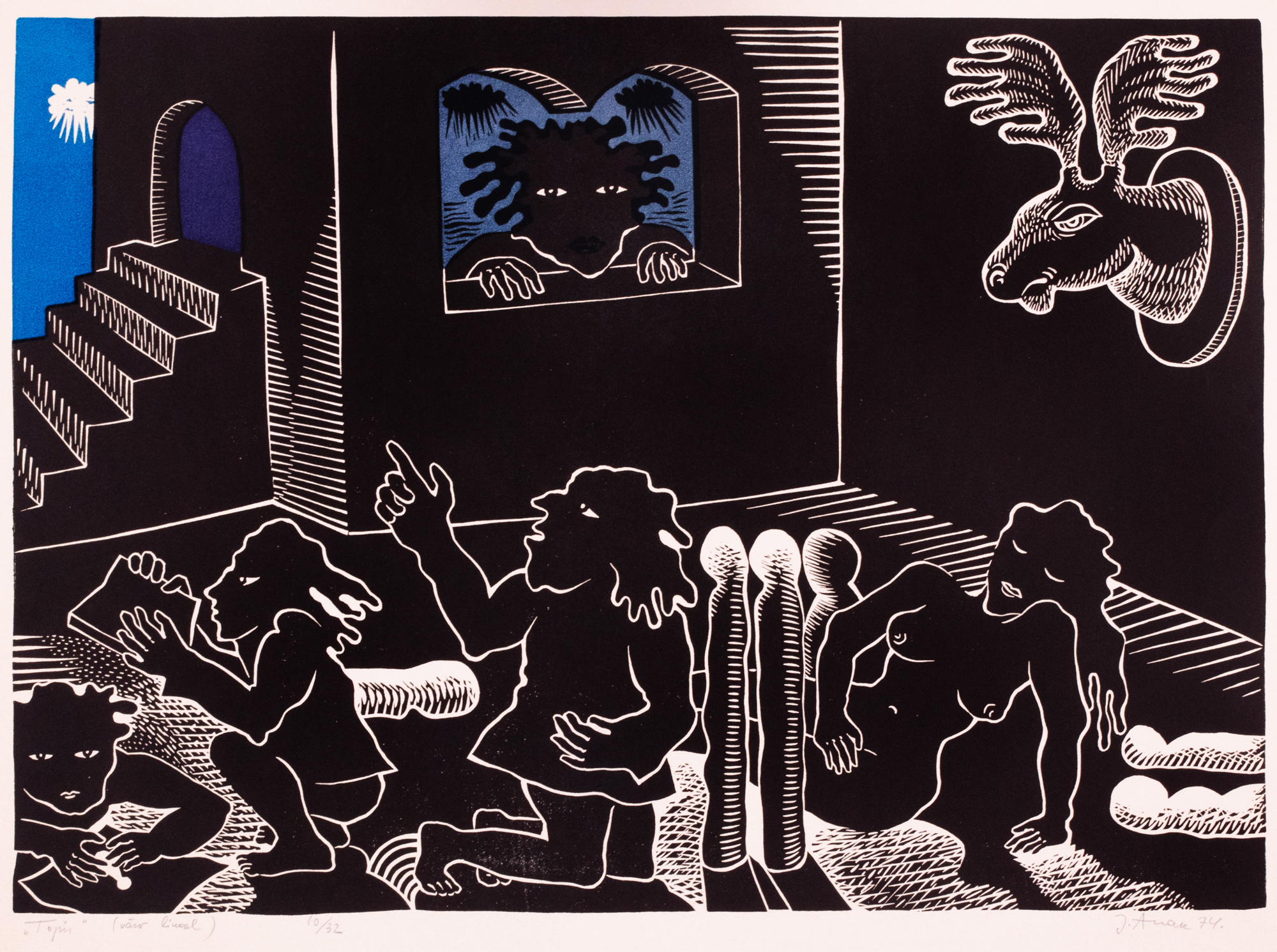 Litograafia, linoollõige . 39.0×49.0 cm