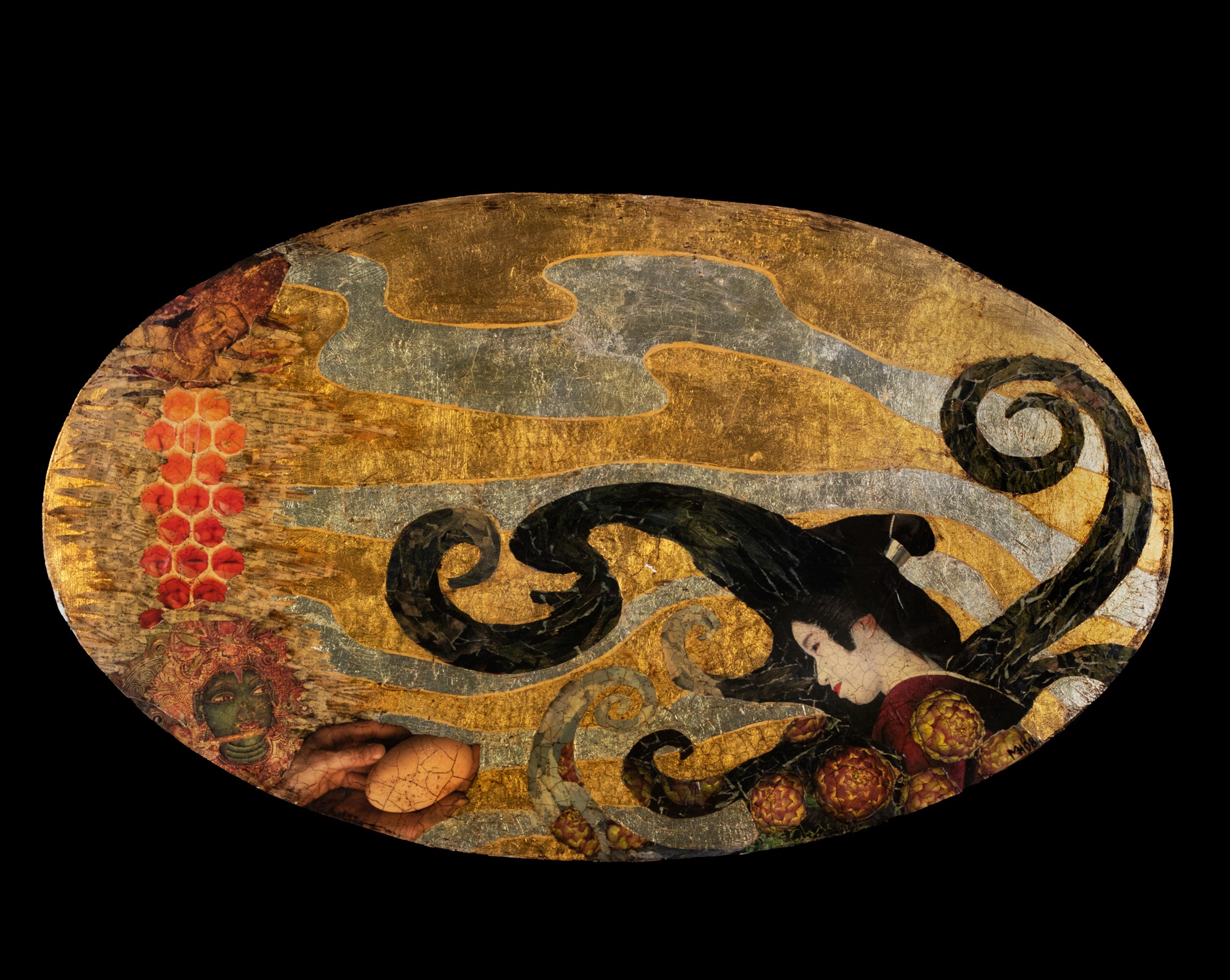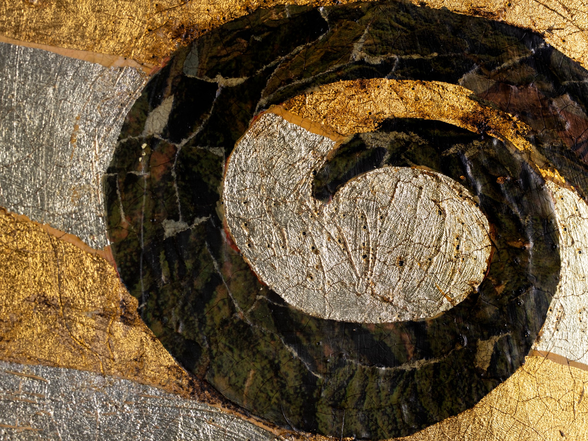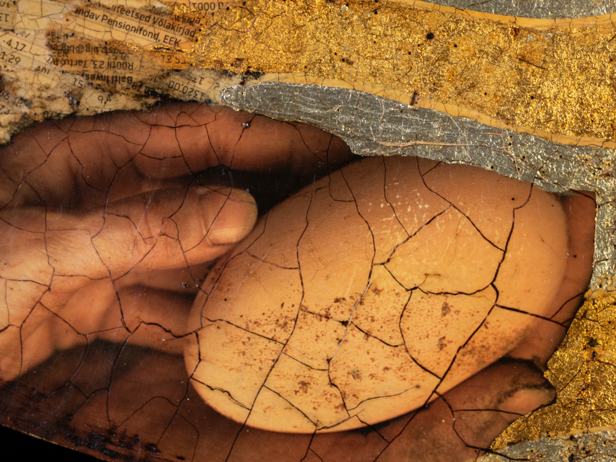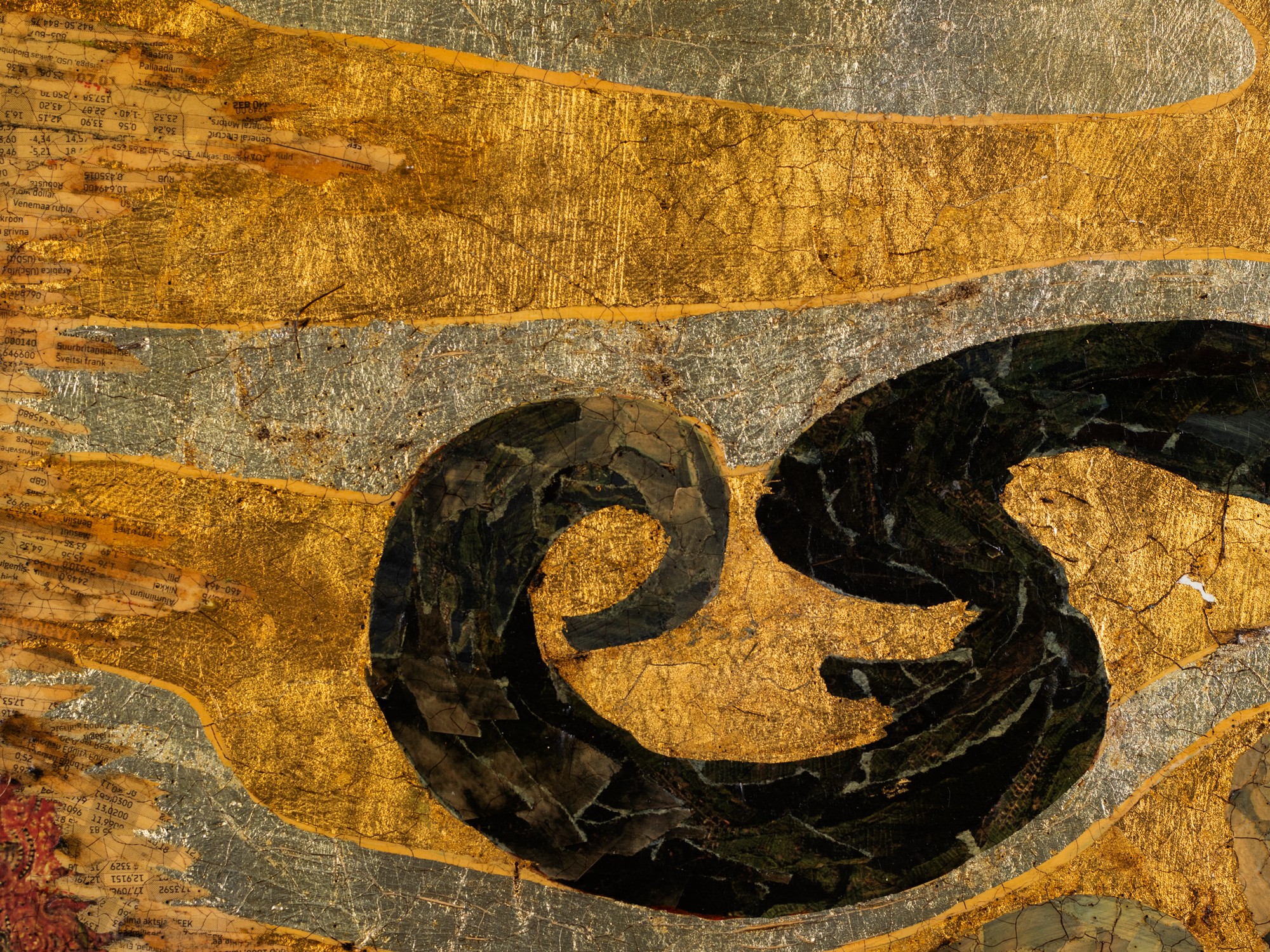 Kollaaž, kuld- ja hõbeleht. 44.5×75.5 cm