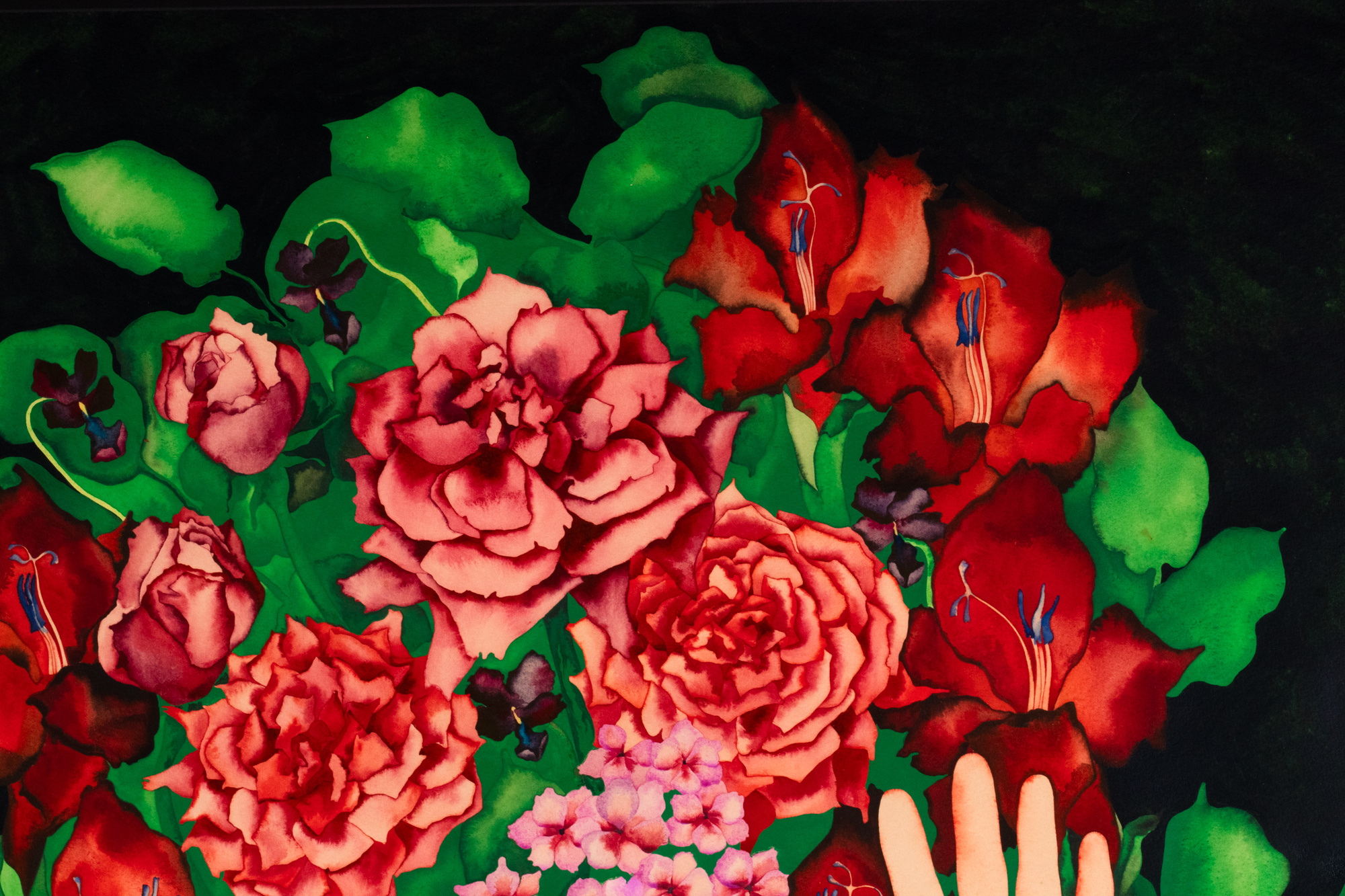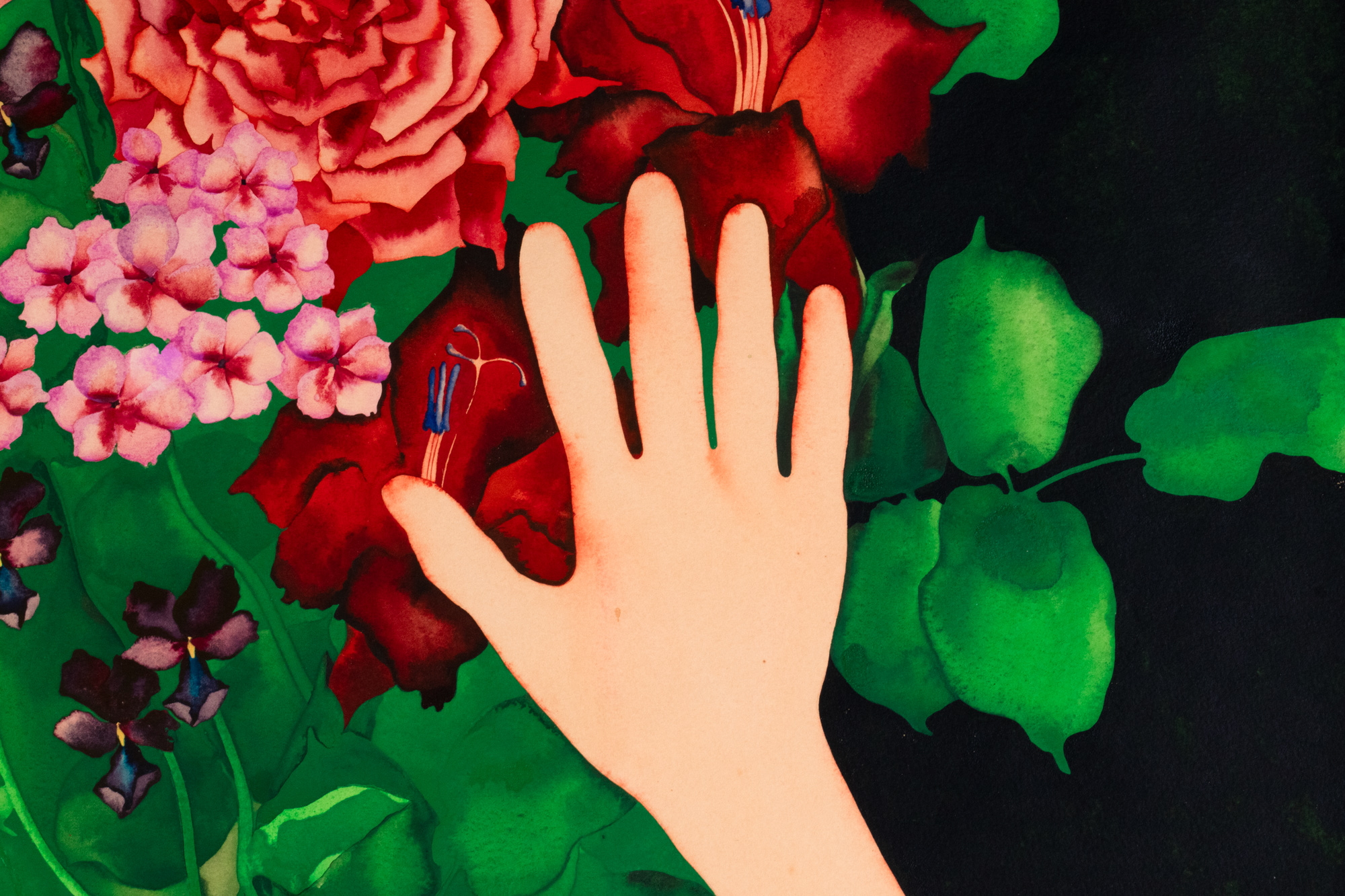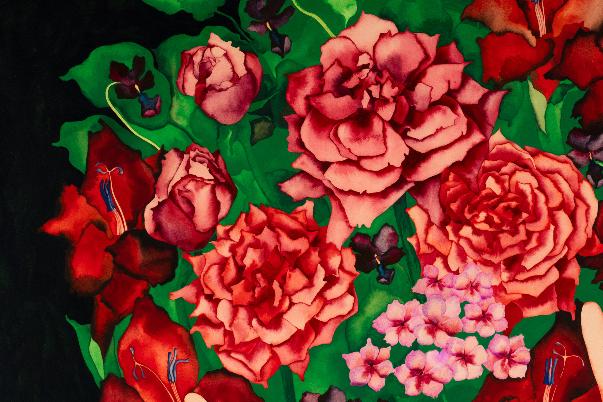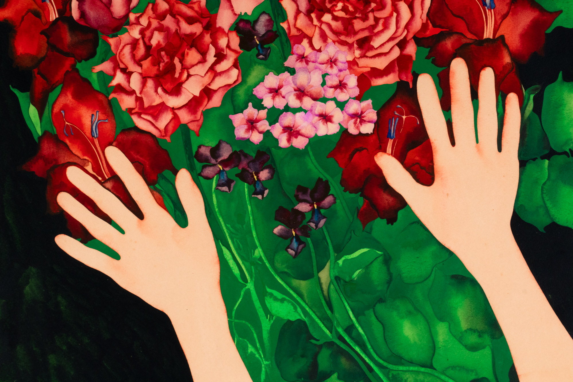 Akvarell mustal paberil. 73.8×111.5 cm