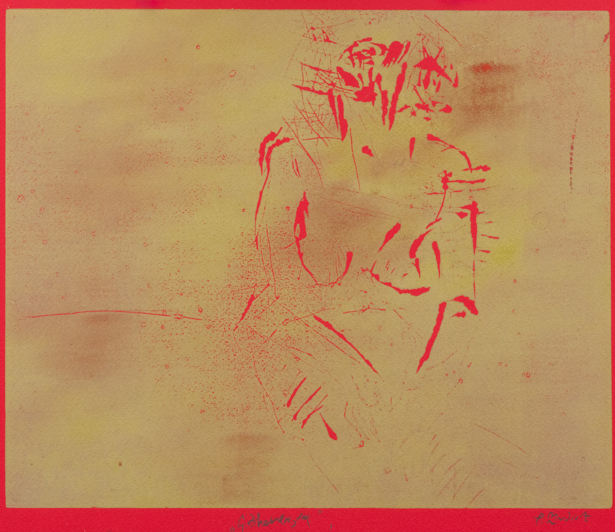 Linoollõige, punane paber. 25.0×30.2 cm