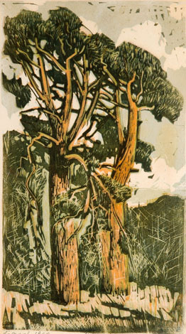 Koloreeritud linoollõige. 25.6×18.7 cm