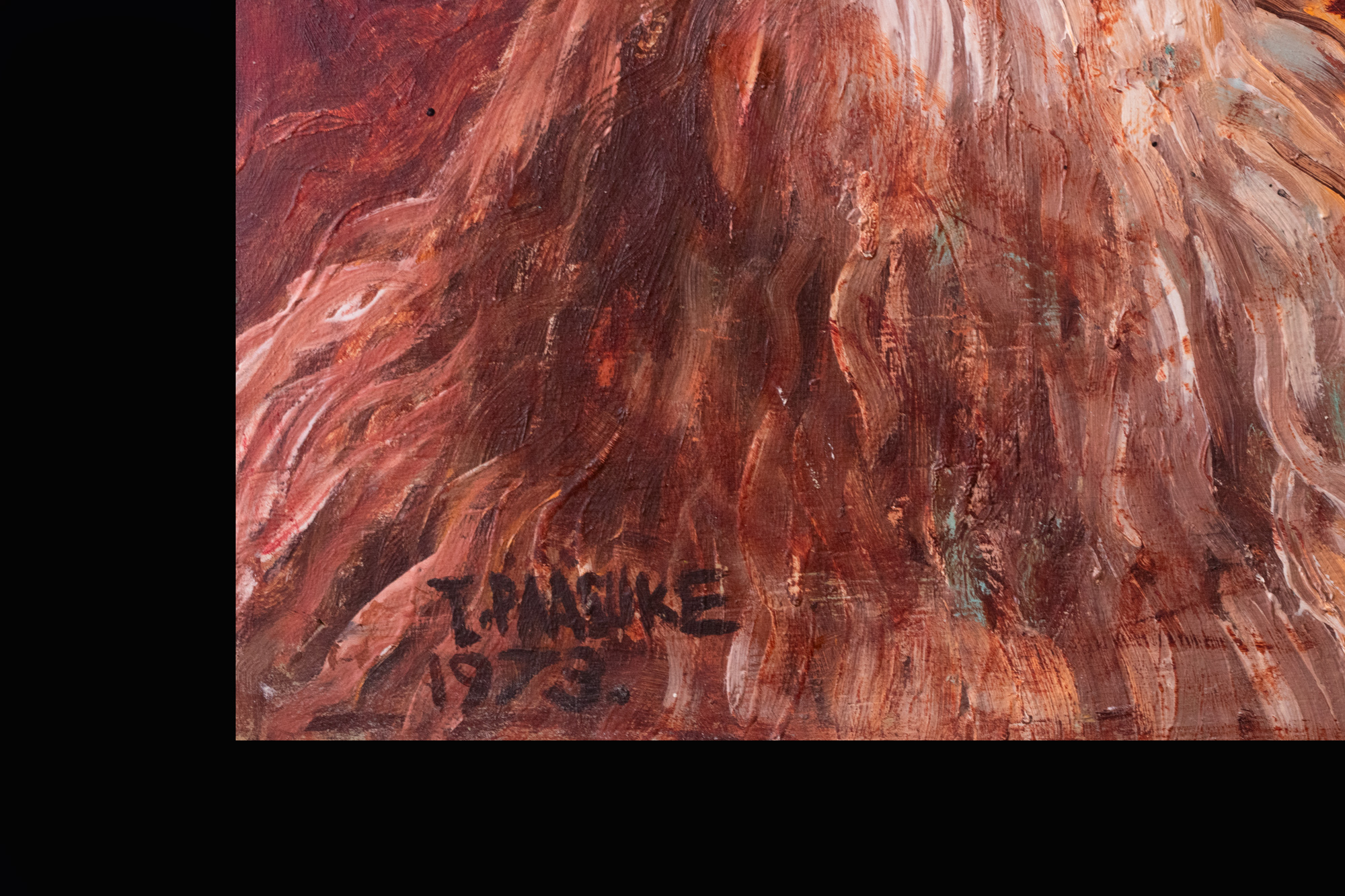 Õli, email, masoniit. 55.0×119.5 cm